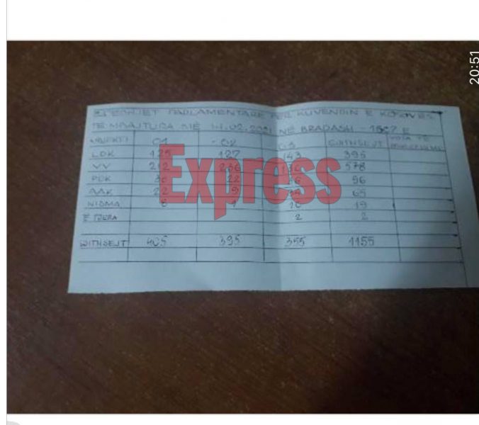 VV ka 460 vota teksa LDK 335.Ndërkaq PDK ka 149 vota.