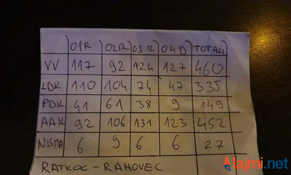 Sipas rezultateve të cilat i ka siguruar lajmi.net nga Ratkoci i Rahovecit, aty VV ka mbi 100 vota më shumë se LDK.