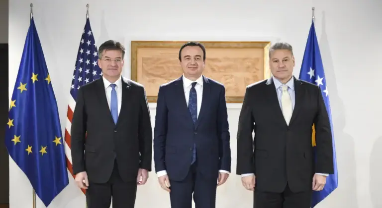 “Kryeministri i Republikës së Kosovës, Albin Kurti, pret në takim Përfaqësuesin e Posaçëm të Bashkimit Evropian për Dialogun Kosovë-Serbi, Miroslav Lajčák dhe Zëvendës Ndihmës Sekretarin e Shteteve të Bashkuara për Çështje Evropiane dhe Euroaziatike dhe njëherësh të dërguarin e posaçëm të Shteteve të Bashkuara të Amerikës për Ballkanin Perëndimor, Gabriel Escobar. Mediat mund të marrin pamje në oborrin e ndërtesës së Qeverisë. VENDI: Ndërtesa e Qeverisë. KOHA: 20:00”, bën me dije Qeveria e Kosovës.