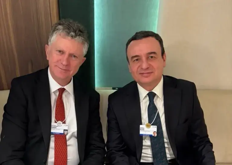 Kurti takoi në Davos Jonathan Powell, këshilltar për Sigurinë Kombëtare të Kryeministrit të Mbretërisë së Bashkuar