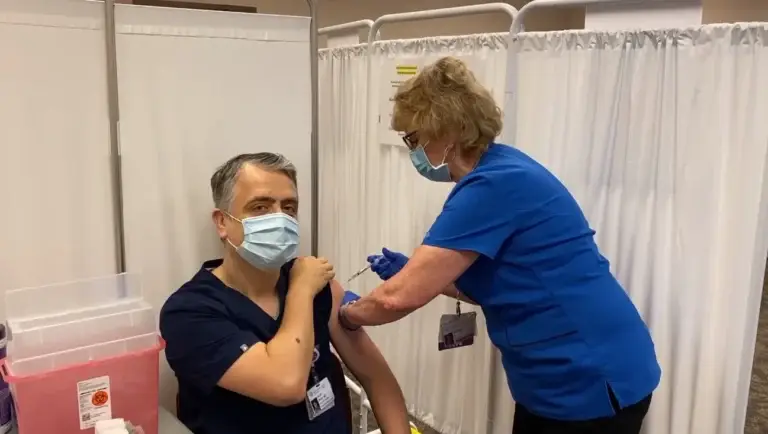 Mjeku, i cili jeton në Shtetet e Bashkuara të Amerikës ka publikuar një video nga momenti kur ka marrë dozën e parë të vaksinës kundër virusit.