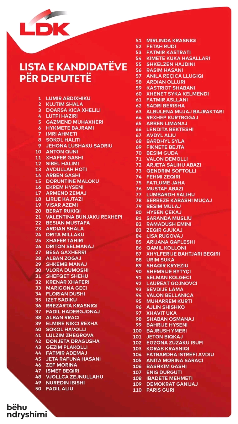 “Lista fituese e zgjedhjeve të 9 shkurtit, e dorëzuar tashmë në Komisionin Qendror të Zgjedhjeve.Zoti e bekoftë Kosovën!Zoti e bekoftë Lidhjen Demokratike të Kosovës!