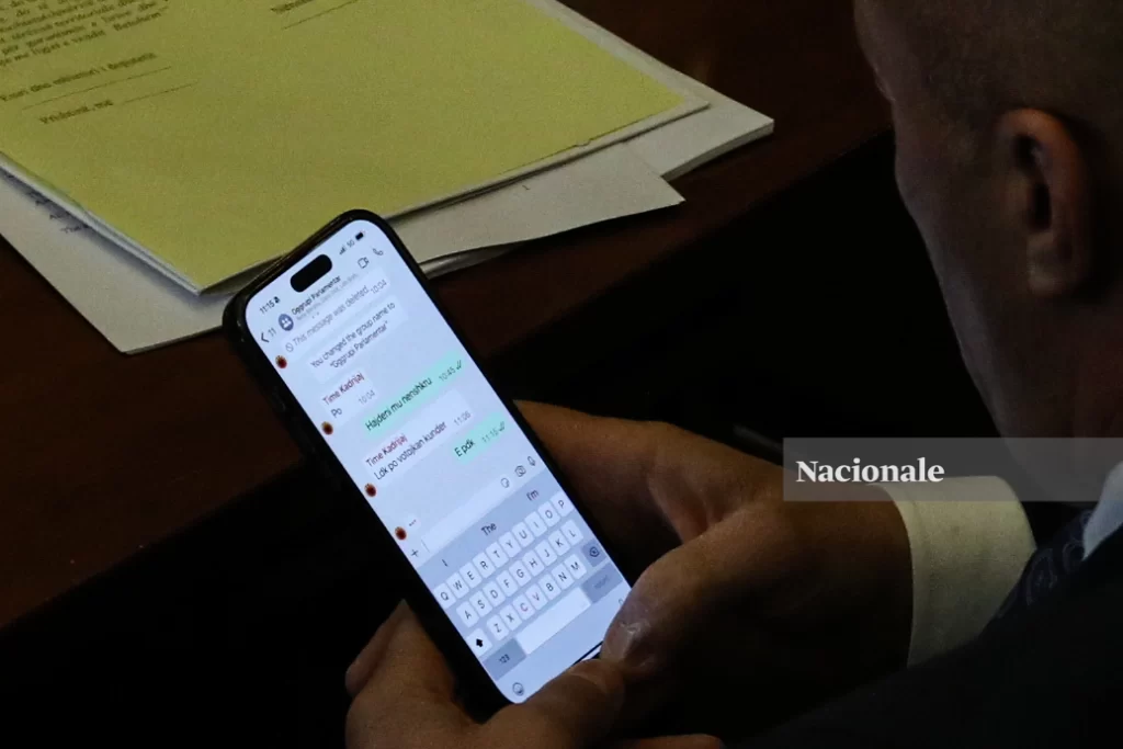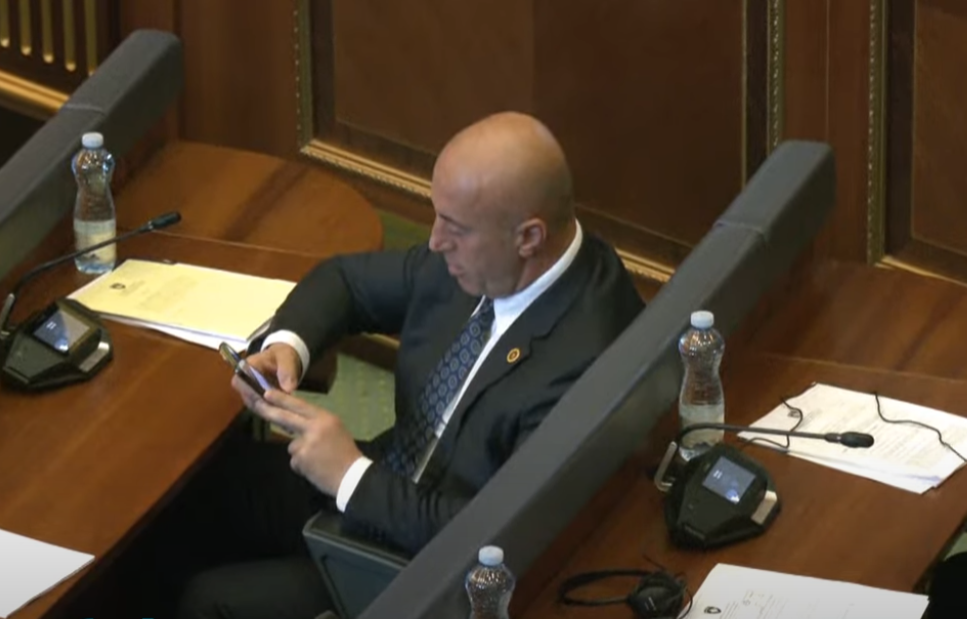 Në disa pamje të kapura nga Nacionale, Time Kadrijaj e njofton Haradinajt se si do të votojë opozita.