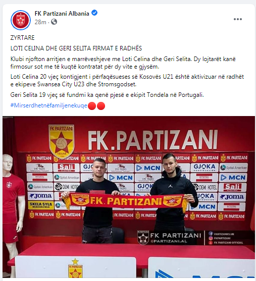 Mbrojtësi i djathtë i Përfaqësueses së Kosovës U21 ka nënshkruar me gjigantin shqiptar Partizanin e Tiranës.