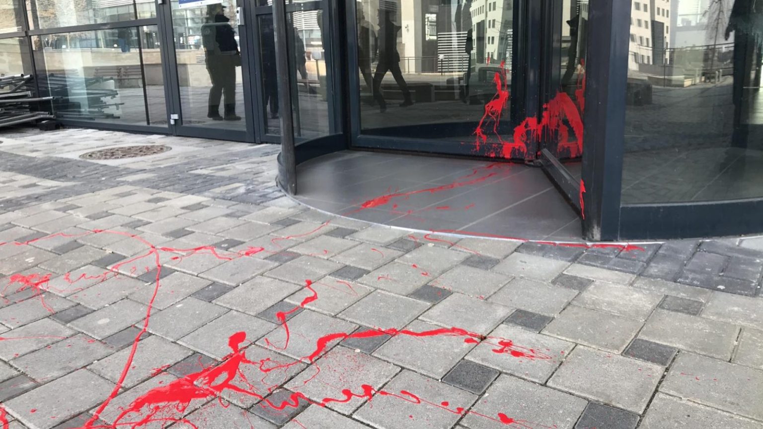 Marshi protestues “Marshojmë s’festojmë”, ngjyroset me të kuqe objekti i Gjykatës Themelore në Prishtinë