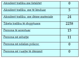 Gjatë kësaj periudhe kanë ndodhur pesë aksidente me të lënduar dhe 24 me dëme materiale.