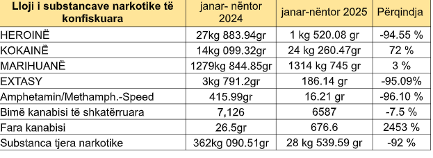Policia ka publikuar gjithashtu informacione lidhur me luftën kundër narkotikëve, duke dhënë detaje për llojet e substancave narkotike që janë konfiskuar gjatë vitit.
