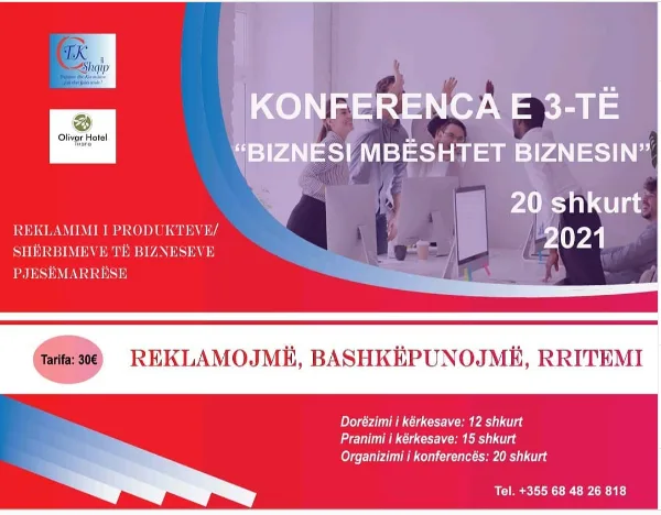 Se si mund të rrisni qarkullimin e biznesit tuaj, se si të rrisni vëllimin e fitimeve, se si të jeni me të vërtetë të suksesshëm dhe të shtoni edhe një sukses tjetër për biznesin tuaj, atëherë duhet të merrni pjesë në konferencën e 3-të që do të mbahet me 20 shkurt.