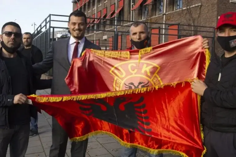 Përderisa Thaçi ishte brenda në sallë, jashtë objektit të Speciales ishte edhe djali i tij, Endriti i cili udhëtoi për ta përkrahur Thaçin në këtë proces gjyqësor.Në një fotografi të realizuar nga AP, Endriti shihet pranë disa përkrahësve të tjerë të Thaçit, e ku nuk munguan as flamujt Kuq e Zi.