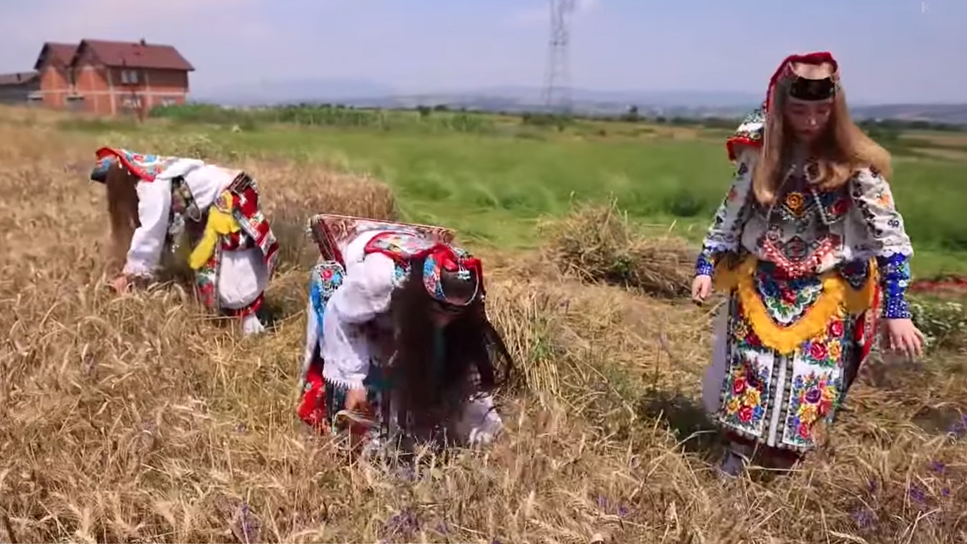 Korrja e grurit me drapër nga gratë e vajzat e fshatit, që mbajnë veshjet hasjane, është një aktivitet që e shënon ardhjen e korrikut.