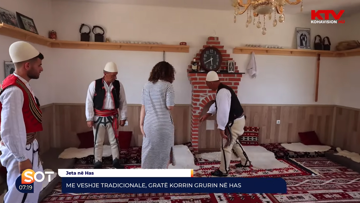 Shani Qenaj në odën e tij pret burrat e fshatit, ku bashkë luajnë lojëra e kërcejnë valle nën tingujt e muzikës folklorike.
