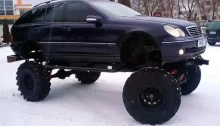 Mercedes-Benz C-Class modeli W203 është shndërruar në një përbindësh të vërtetë me aftësi të një foristrade për terrene malore, transmeton Alsat. Sipas pronarit, automjeti është ri-dizajnuar (mund të thuhet se është montuar) plotësisht me dorë. Vetura është vendosur në platformën e GAZ 66, ndërsa për karroceri dhe interier është përdorur modeli i Mercedesit të lartpërmendur.