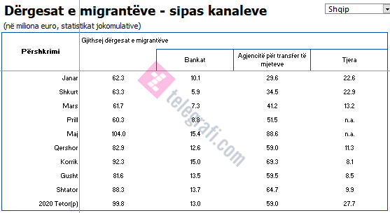 Për këtë periudhë, rritja e remitencave është për 7.2 për qind më e madhe se vitin 2019.