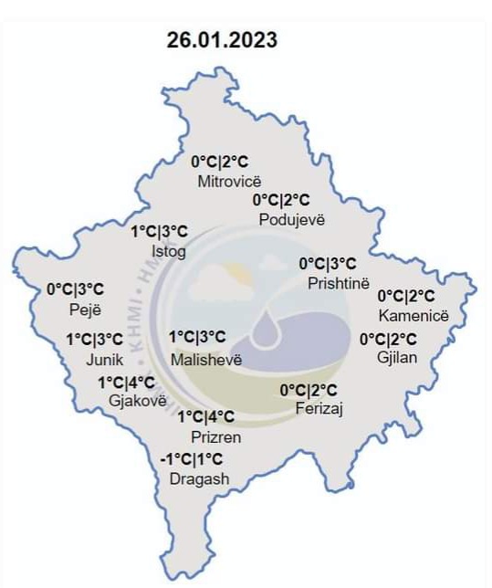 Temperatura minimale dot të jetë -1 gradë ndërsa ajo maksimale 4 gradë celcius.
