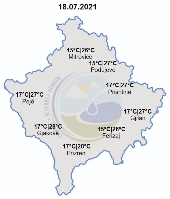Temperaturat minimale do të lëvizin ndërmjet 15-17 gradë Celsius, ndërsa maksimalet e ditës parashihen të lëvizin ndërmjet 26-28 gradë Celsius.