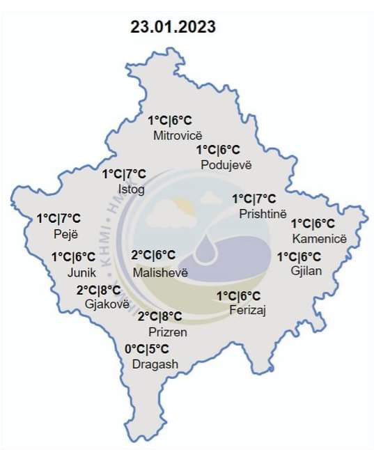 Të hënën – Mot kryesisht i vranët dhe me reshje shiu në viset e ulëta, ndersa në viset e larta reshje bore. Reshjet parashihen ta përfshijnë gjithë territorin e vendit.