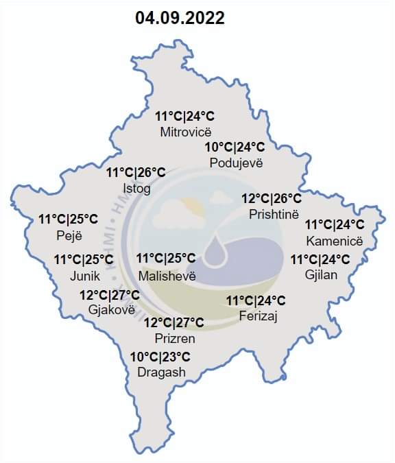 Instituti Hidrometeorolobjik i Kosovës njofton se skt do të mbaj mot me diell dhe vranësira të cilat në pjesën e dytë të ditës vende-vende parashihen të sjellin reshje shiu, kryesisht në veri, perëndim dhe jugperëndim të vendit.