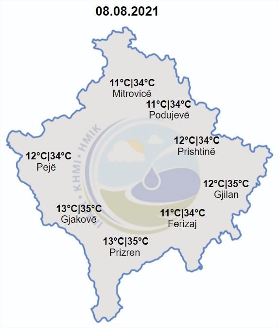 Temperaturat minimale do të lëvizin ndërmjet 11-13 gradë Celsius, ndërsa maksimalet e ditës parashihen të lëvizin ndërmjet 34-35 gradë Celsius.