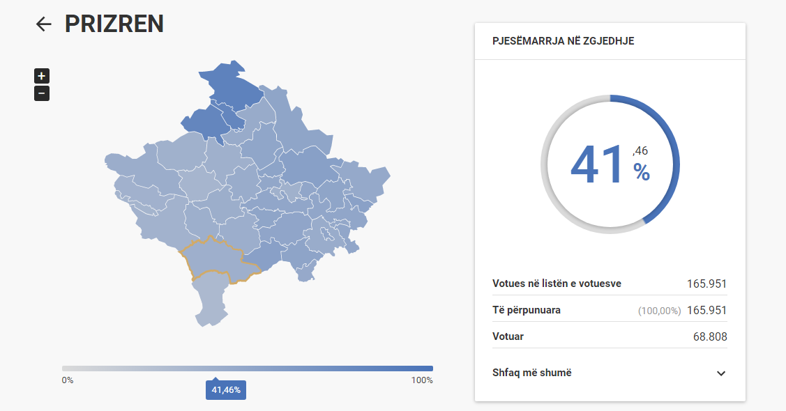 Sipas të dhënave nga Komisioni Qendror i Zgjedhjeve, numri i votuesve në Prizren ka shkuar mbi 68 mijë vota.