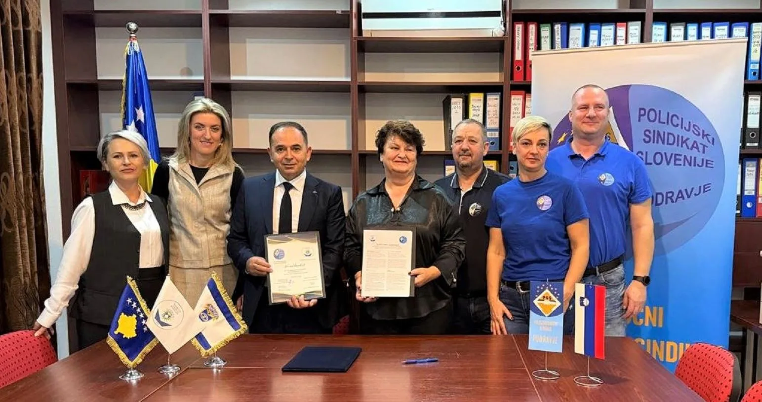 Sindikata e Policisë së Kosovës, në një komunikatë për media, ka njoftuar se si rezultat i përkushtimit të përbashkët për avancimin e të drejtave, dinjitetit dhe profesionalizmit të punonjësve të policisë, u nënshkrua Marrëveshja e Bashkëpunimit Ndërkombëtar ndërmjet Sindikatës së Policisë së Kosovës (SPK) dhe Sindikatës së Policisë së Sllovenisë – OPS Podravje.