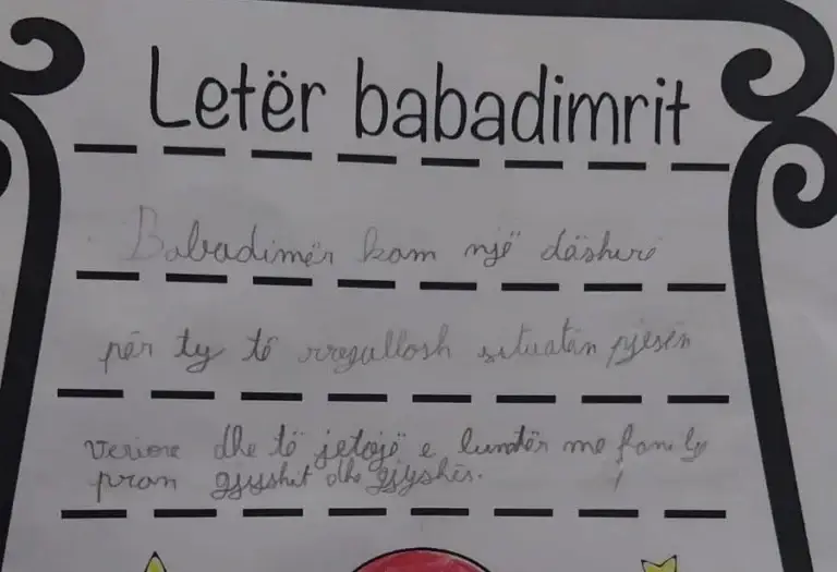 ““Dashni n’Veri. Kjo eshte letra drejtuar babadimrit nga nje femi nga veriuJa arsyeja pse në të “rriturit” duhet të kemi kujdes gjatë aktiviteteve tona të përditshme, debateve, raportimeve e deri te bisedat e rëndomta. Kujdes maksimal për ata që i kemi në përkujdesje !!!Jeta vazhdon !!!””.