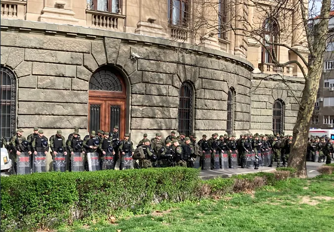 Në anën tjetër, një numër i madh i forcave policore dhe xhandarmërisë janë angazhuar në qendër të Beogradit, para nisjes së protestës së thirrur nga studentët, siç raporton Radio Evropa e Lirë.