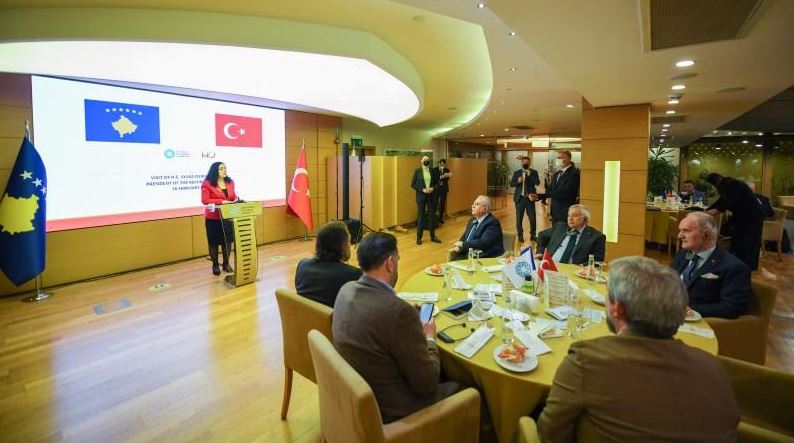 Ndërkaq në takim me Bordin e Marrëdhënieve të Jashtme Ekonomike të Turqisë dhe me Odën Tregtare të Turqisë, Presidentja Osmani ka ftuar bizneset turke për investime në Kosovë, duke e përmendur ambientin e përshtatshëm, infrastrukturën ligjore që i mbron bizneset si dhe kapitalin e jashtëzakonshëm njerëzor që ka vendi ynë.