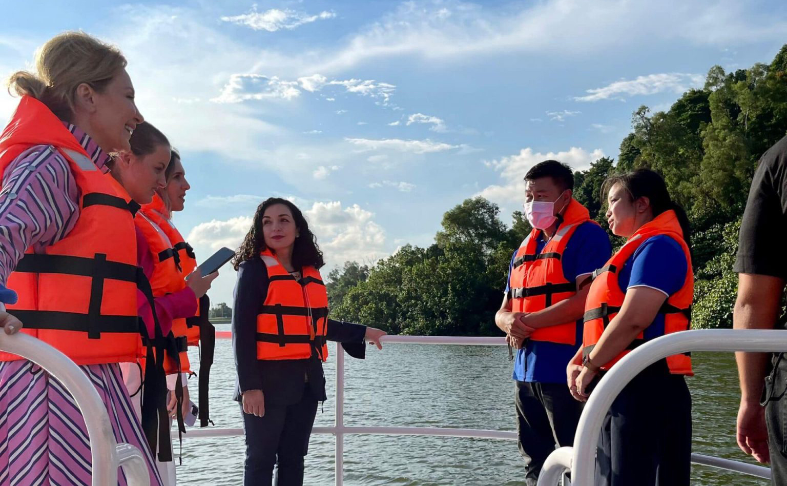 “Me një kapacitet prej 60 MËp, një sipërfaqe prej 45 hektarësh e 122,000 paneleve lundruese, projekti i kompanisë Sembcorp furnizon me energji pesë impiantet lokale të trajtimit të ujit të Singaporit, duke e bërë vendin një nga vendet e pakta në botë që ka një sistem ujësjellësi 100% të gjelbër”, u shpreh Presidentja Osmani.