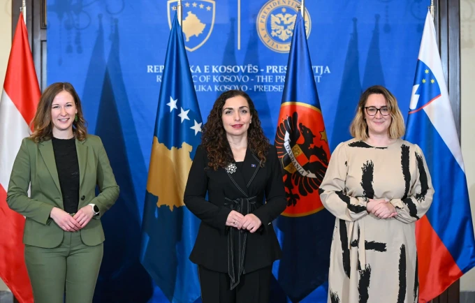 Presidentja e Kosovës Vjosa Osmani, ka pritur në takim Ministren Federale të Austrisë për Evropë, Integrim dhe Familje, Claudia Plakolm, dhe Sekretaren e Shtetit të Sllovenisë për Çështje Evropiane, Neva Grashiq.