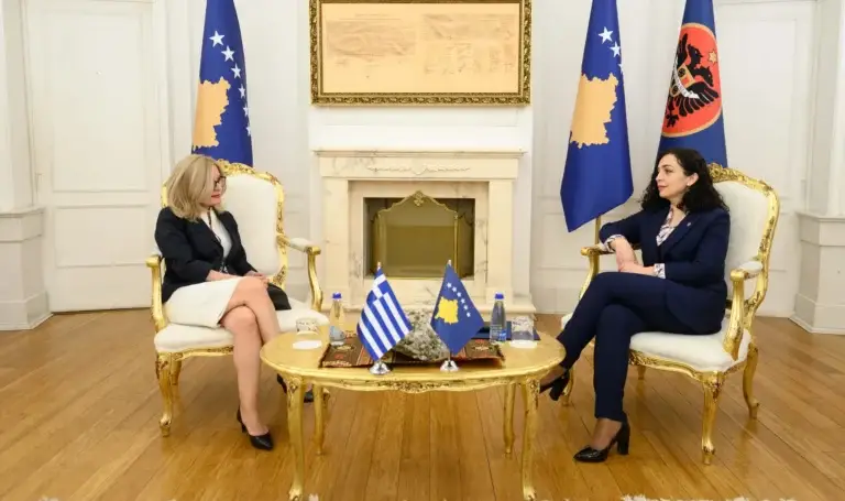 Presidentja Vjosa Osmani-Sadriu ka pritur sot në takim njoftues shefen e re të Zyrës Ndërlidhëse të Republikës së Greqisë, ambasadoren Heleni Vakali.