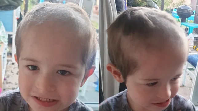 Një djalë pesëvjeçar tronditi prindërit e tij kur e panë se ai kishte rruajtur kokën e tij pasi ata i kthyen shpinën për pak minuta.