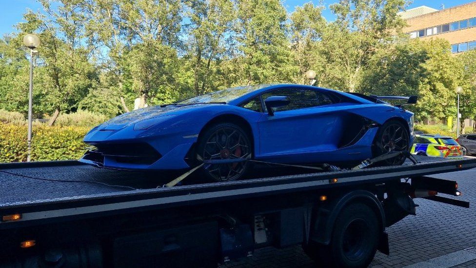 Në postimin e bërë në rrjetet sociale, oficerët nga policia e Thames Valley shkruan: “Ne e vumë re këtë Lamborghini Aventador të bukur duke u ngasur në Milton Keynes pa targë të përparme”.