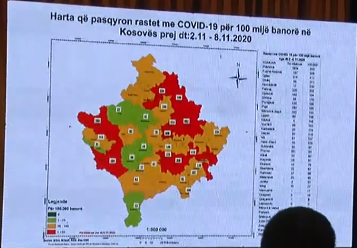 E sipas klasifikimit qyteti i Prizrenit aktualisht ndodhet në zonën portokalli, e që i bie të futet në zonën me rrezikshmëri të mesme, nga 76 deri në 149 të infektuar në javë për 100 mijë banorë, shkruan TV Prizreni.