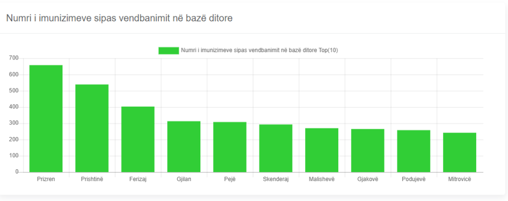 MSh-ja ka njoftuar se nga 5 mijë e 287 doza kundër virusit që janë administruar sot, 658 prej tyre janë dhënë në komunën e Prizrenit.