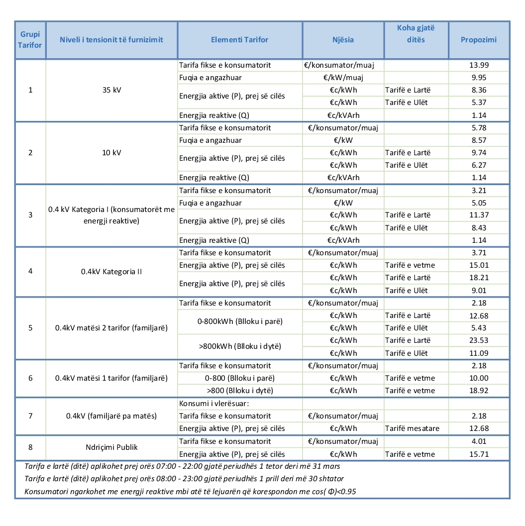 Për kategoritë e tjera, tarifat e reja të propozuara nga KESCO mund t’i gjeni më poshtë.