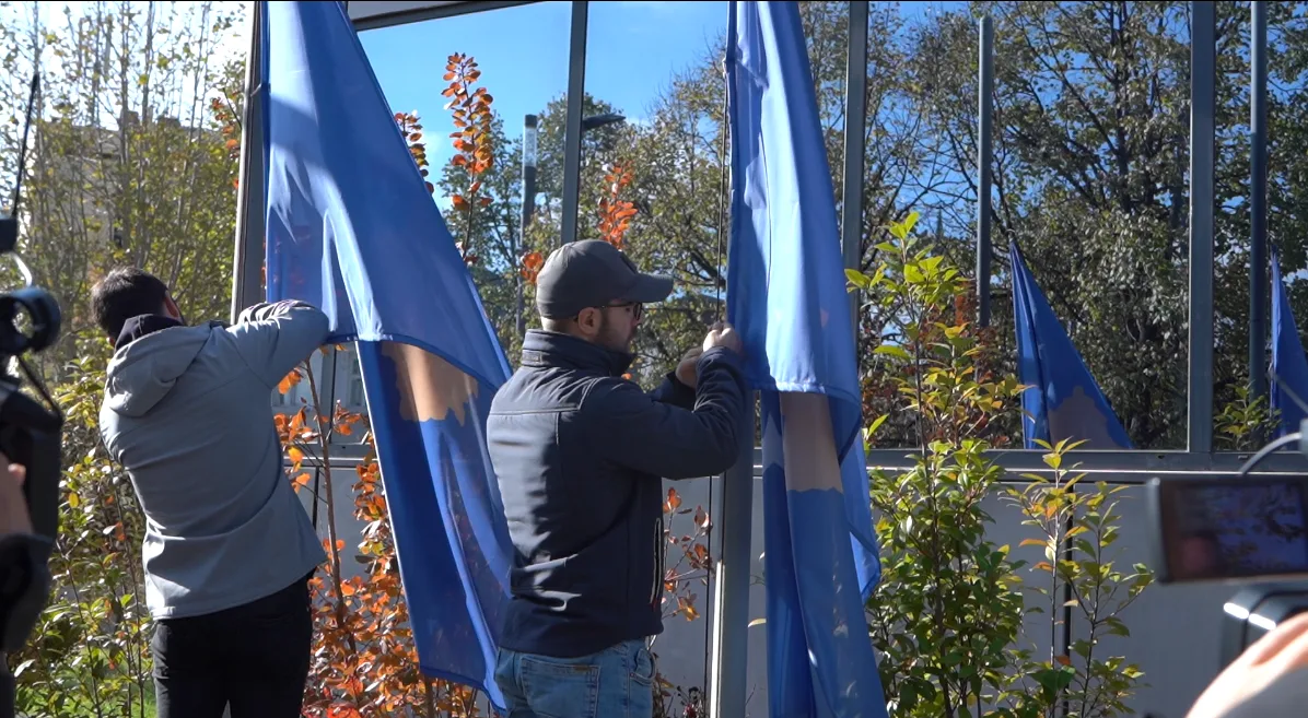Partia Socialdemokrate përmes një aksioni ka zëvendësuar flamurin e Kosovës, me një improvizim të një flamuri me dy yje dhe një pjesë e territorit me ngjyrë të bardhë.