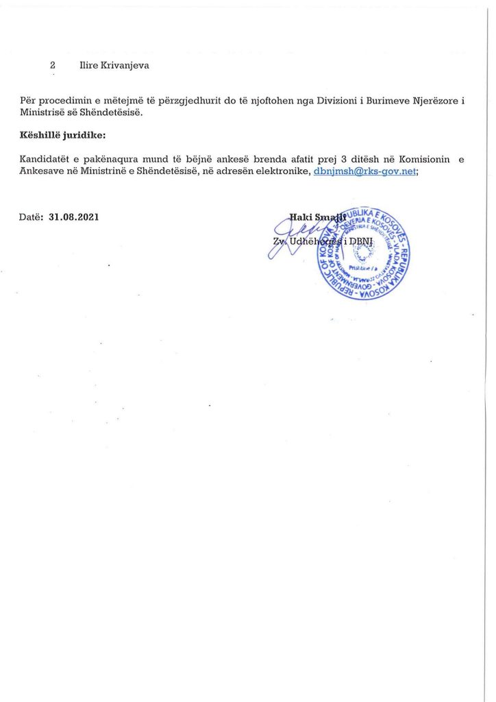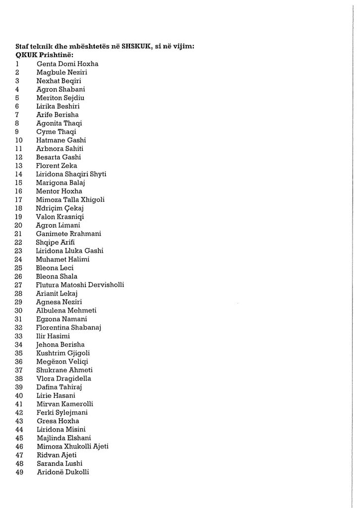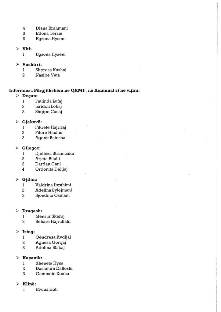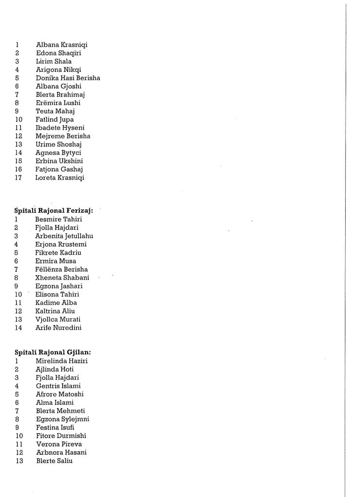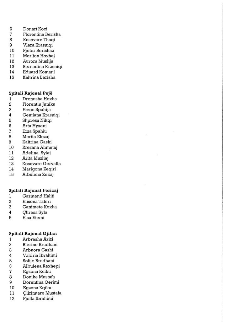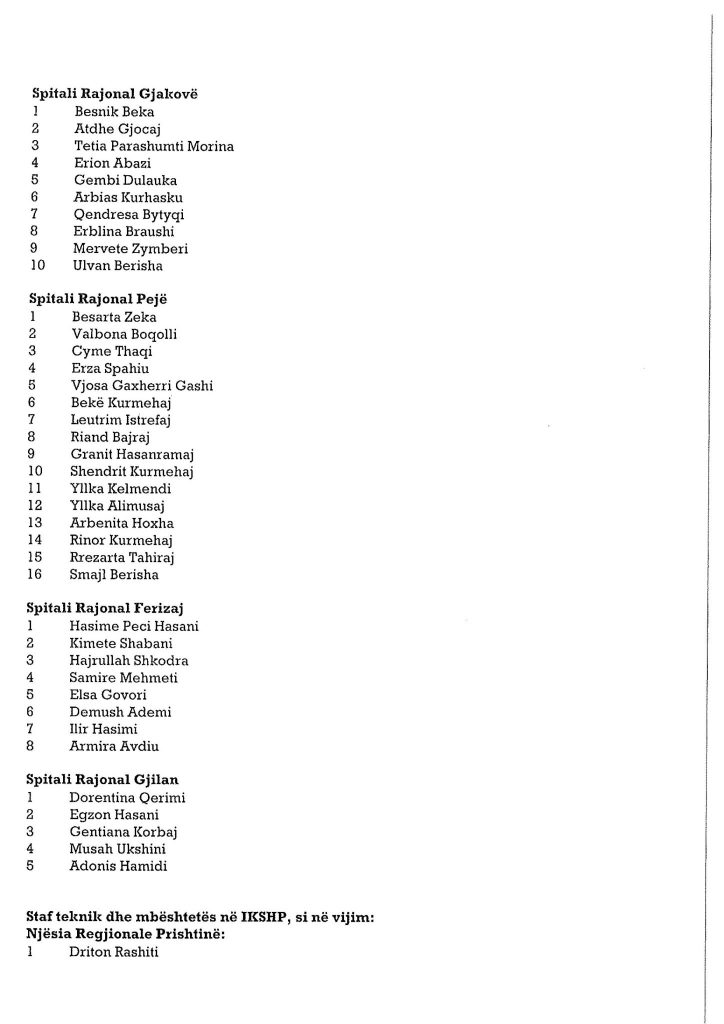 Ministria e Shëndetësisë ka bërë publike emrat e personave të cilët janë pranuar në listat për infermier në Shërbimin Spitalor dhe Klinik Universitar të Kosovës dhe spitalet e komunave.Angazhimi i këtij stafi është bërë për të përballuar situatën e rëndë shëndetësore në të cilën po kalon Kosova.Muaji gusht është përcjellë me numër të lartë të infektimeve.