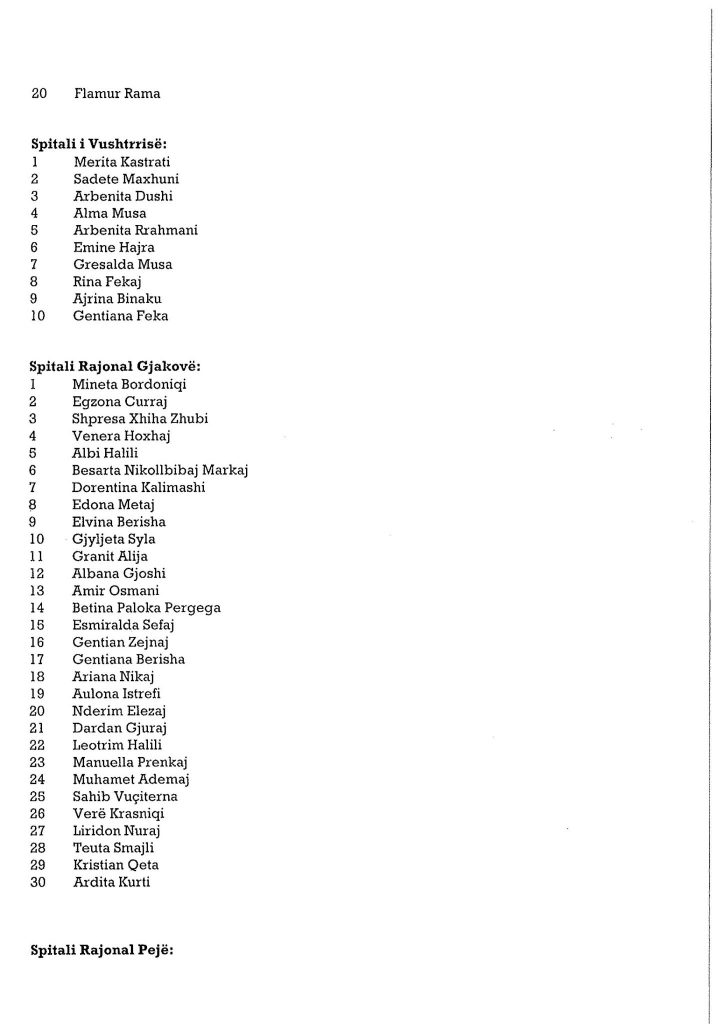 Situata epidemiologjike vazhdon të jetë e rëndë si për nga numri i shtrimeve në spitale ashtu edhe për nga numri i të vdekurve.Sipas të dhënave zyrtare, gjatë muajit gusht janë shënuar 238 vdekje nga coronavirusi.Më poshtë listën e infermierëve të pranuar: