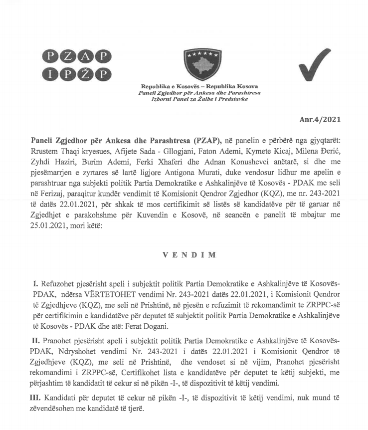 Zyra për regjistrimin e partive politike (ZRPPC) në rekomandimet e dërguar KQZ kishte kërkuar që ky organ të certifikojë listat e partive politike ashtu siç janë.