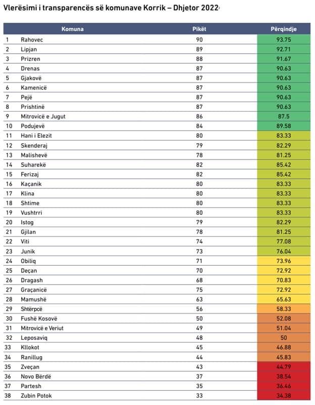 “Instituti Demokratik i Kosovës (KDI), në partneritet me konsorciumin e organizatave jo qeveritare “Aleanca Qytetare për Transparencë”, ka publikuar Transparometrin Komunal, ku pasqyrohen te gjeturat e nivelit të transparencës së institucioneve lokale për 38 komunat e Kosovës për gjysmën e dytë të vitit 2022 (korrik-dhjetor).