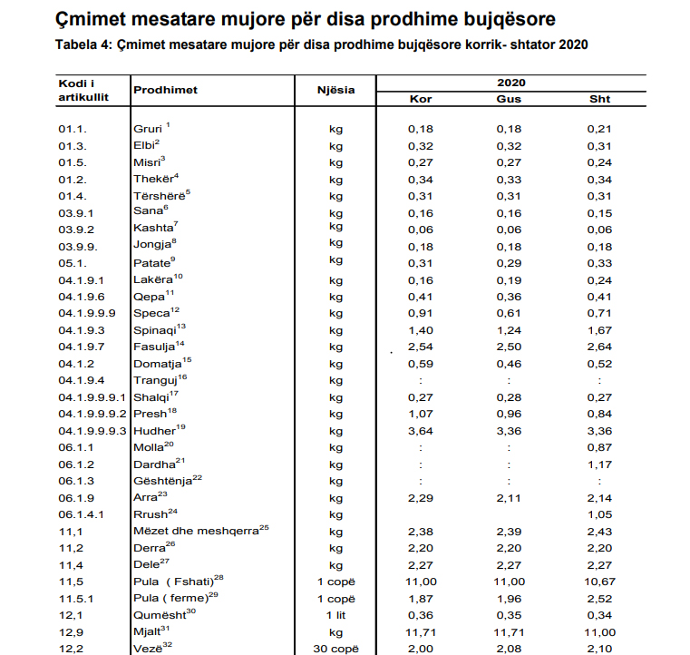 Nga statistikat e publikuara, shihet që nga muaji korrik deri në shtator, çmimi i i disa produkteve është rritur.