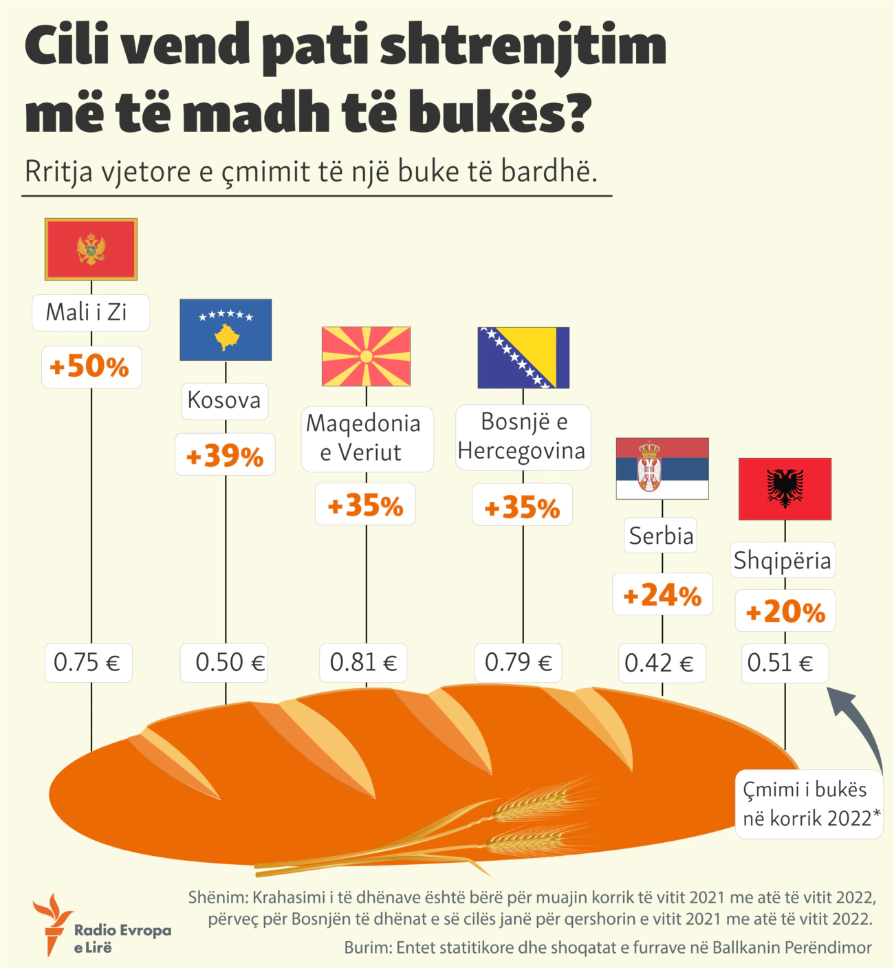 Dhe, në krahasim me vendet e rajonit si Mali i Zi, Maqedonia e Veriut dhe Bosnja, Kosova ka çmim më të ulët të bukës, përderisa me rritje të çmimit rënditet e dyta pas Malit të Zi.