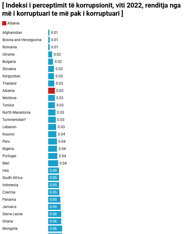 Shqipëria renditet ndër 10 vendet më të korruptuara në botë, sipas perceptimit të qytetarëve të saj.