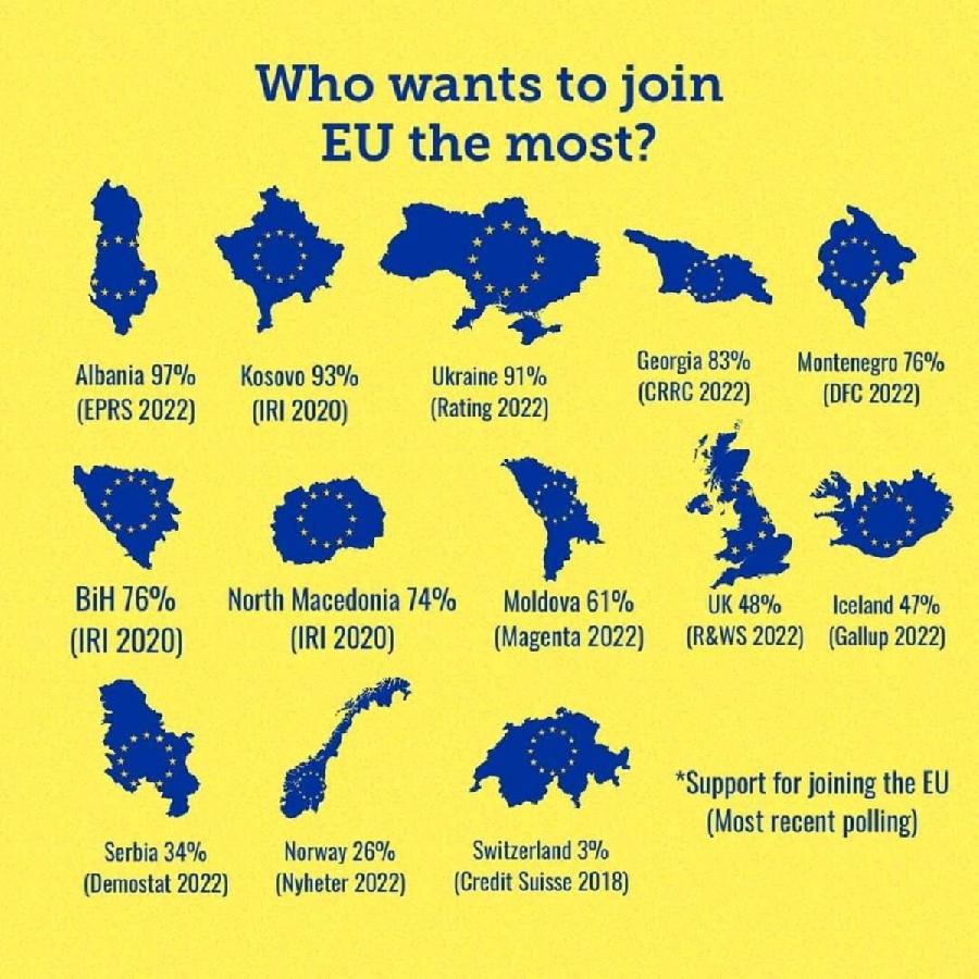 Në një sondazh të publikuar nga Ubo Consulting në mars të këtij viti, Kosova shënonte 95 përqind pro anëtarësimit në NATO dhe 93.9% pro anëtarësimit në BE.