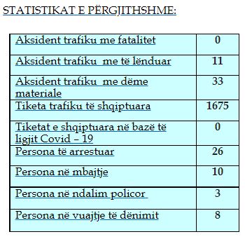Gjatë kësaj periudhe kanë ndodhur 11 aksidente me të lënduar dhe 33 me dëme materiale.