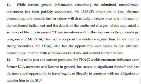 Kryeprokurori i Prokurorisë Speciale të Hagës, Jack Smith, në letrën e tij drejtuar Gjyqtarit të Procedurës Paraprake, Nicola Guillou, letër e cila është e publikuar edhe në faqen zyrtare të Gjykatë Speciale, kishte renditur argumentet e tij se pse Hashim Thaçi duhet të arrestohet dhe të dërgohet në paraburgim.