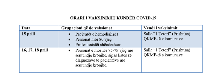 Gjithashtu, krahas vaksinimit të pacientëve të hemodializës, gjatë kësaj kohe procesi i vaksinimit është i hapur edhe më tej për profesionistët shëndetësor si dhe për personat mbi moshën 80 vjeçare.