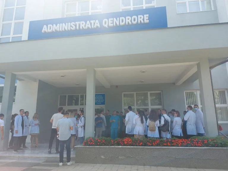 Dhjetëra specializantë po protestojnë para Administratës Qendrore të SHSKUK;së, për mospagesat e kujdestarive 24 orëshe gjatë vikendeve dhe gjatë festave.