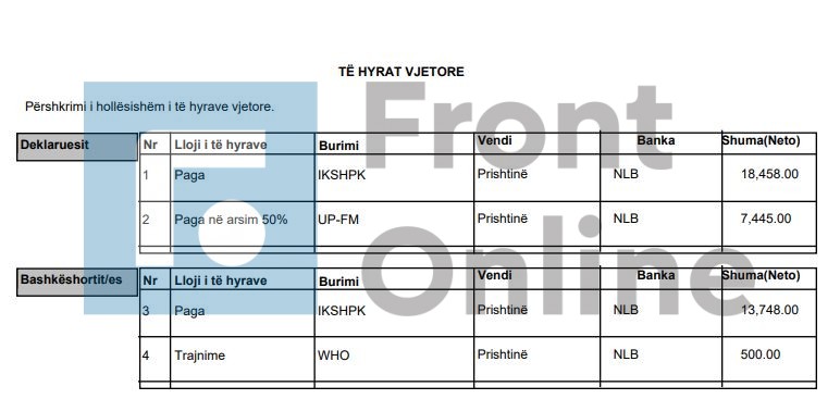 Si pagë vjetore në IKSHPK, ai ka deklaruar 18 mijë e 458 euro neto, ndërsa nga dy punët tjera ai ka deklaruar 7 mijë e 445 euro.