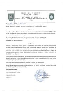 Në vendimin e Drejtorisë së Arsimit në Pejë, thuhet se mësimdhënësi A. M. suspendohet përkohësisht nga puna nën dyshimin se ka kryer vepër penale në vendin e punës dhe ka shkelur detyrat e punës.